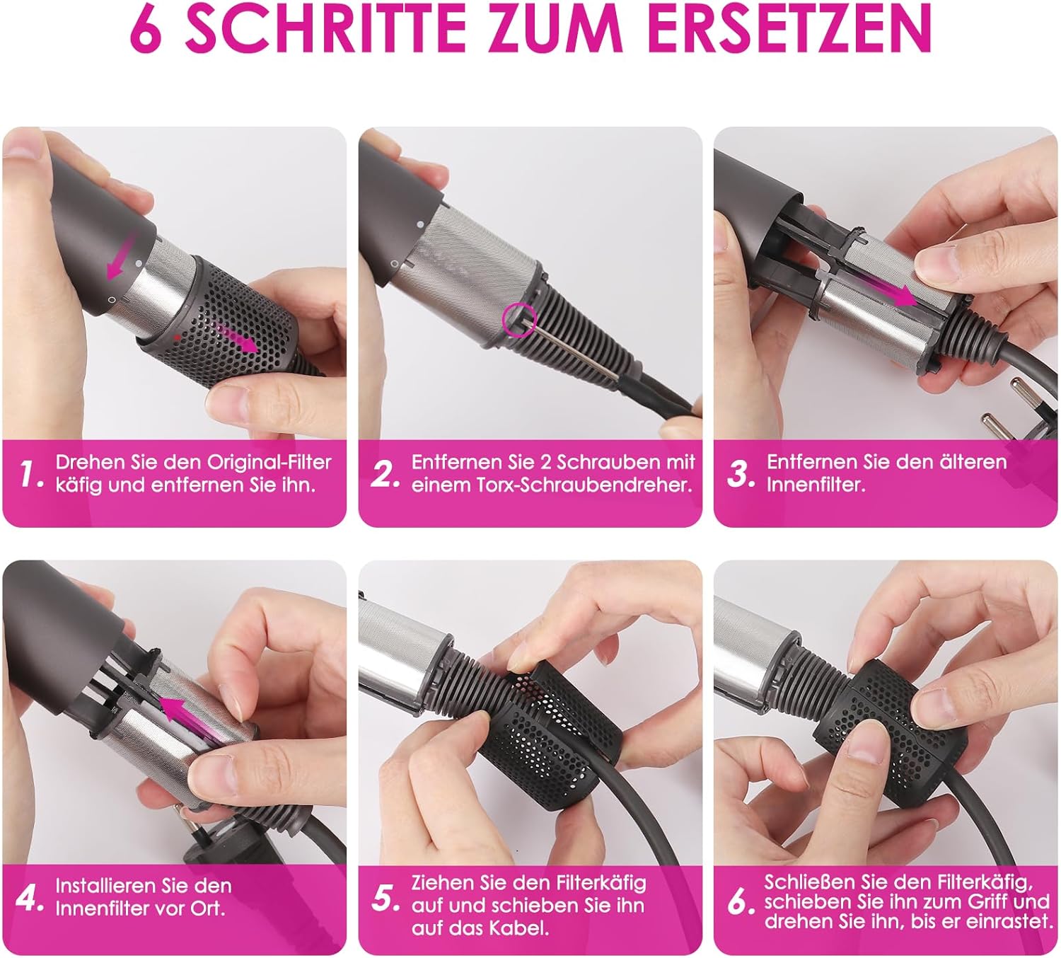 CD Recambios – Kit de Filtro Interno + Filtro Exterior Mejorado para Dyson Supersonic™ HD01 / HD03 / HD08 (Gris Metalizado)